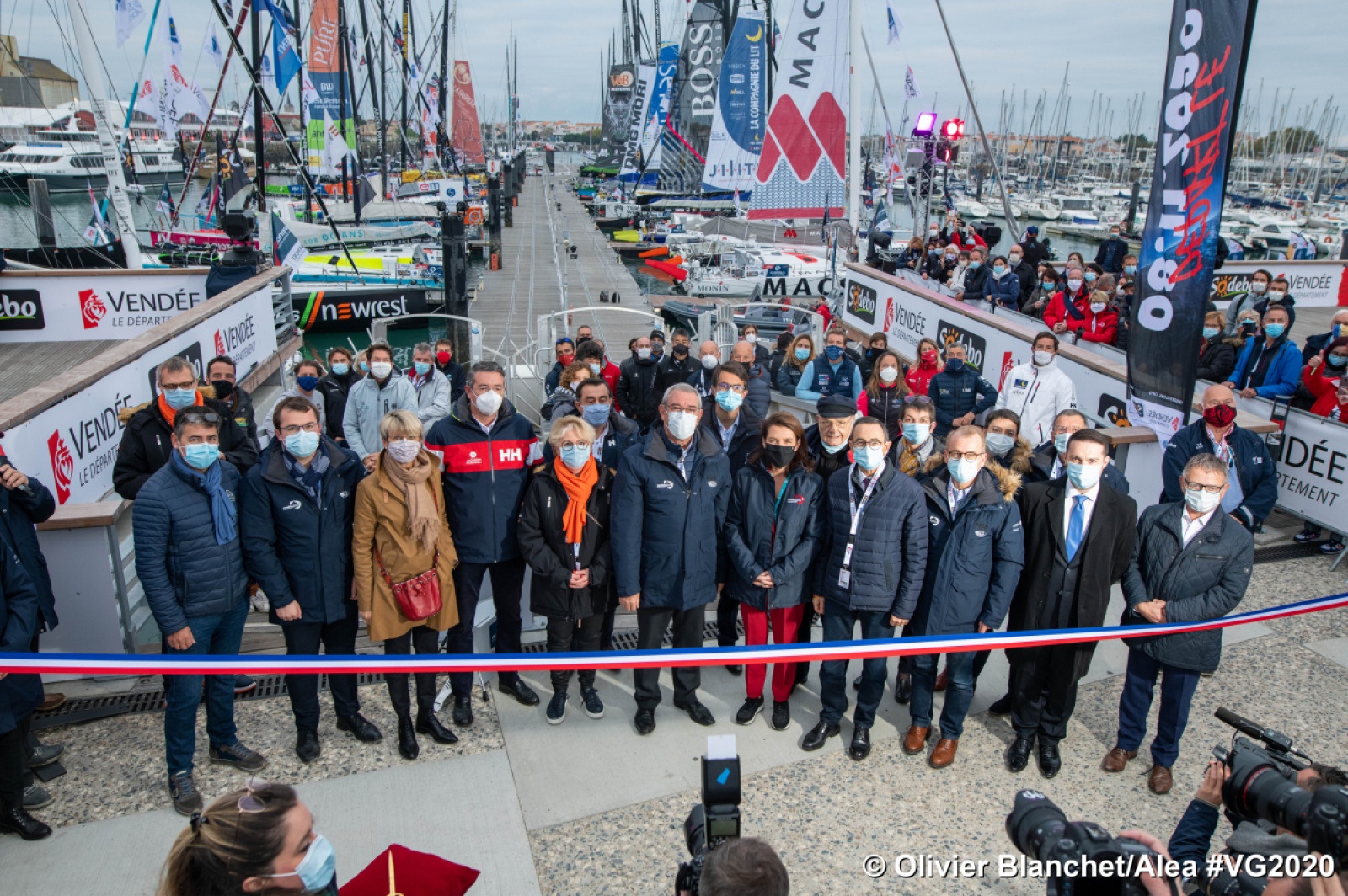 ”Uma verdadeira alegria para todos nós hoje em ver nossos 33 capitães, seus barcos e suas equipes presentes aqui ao longo do pontão Vendée Globe”.