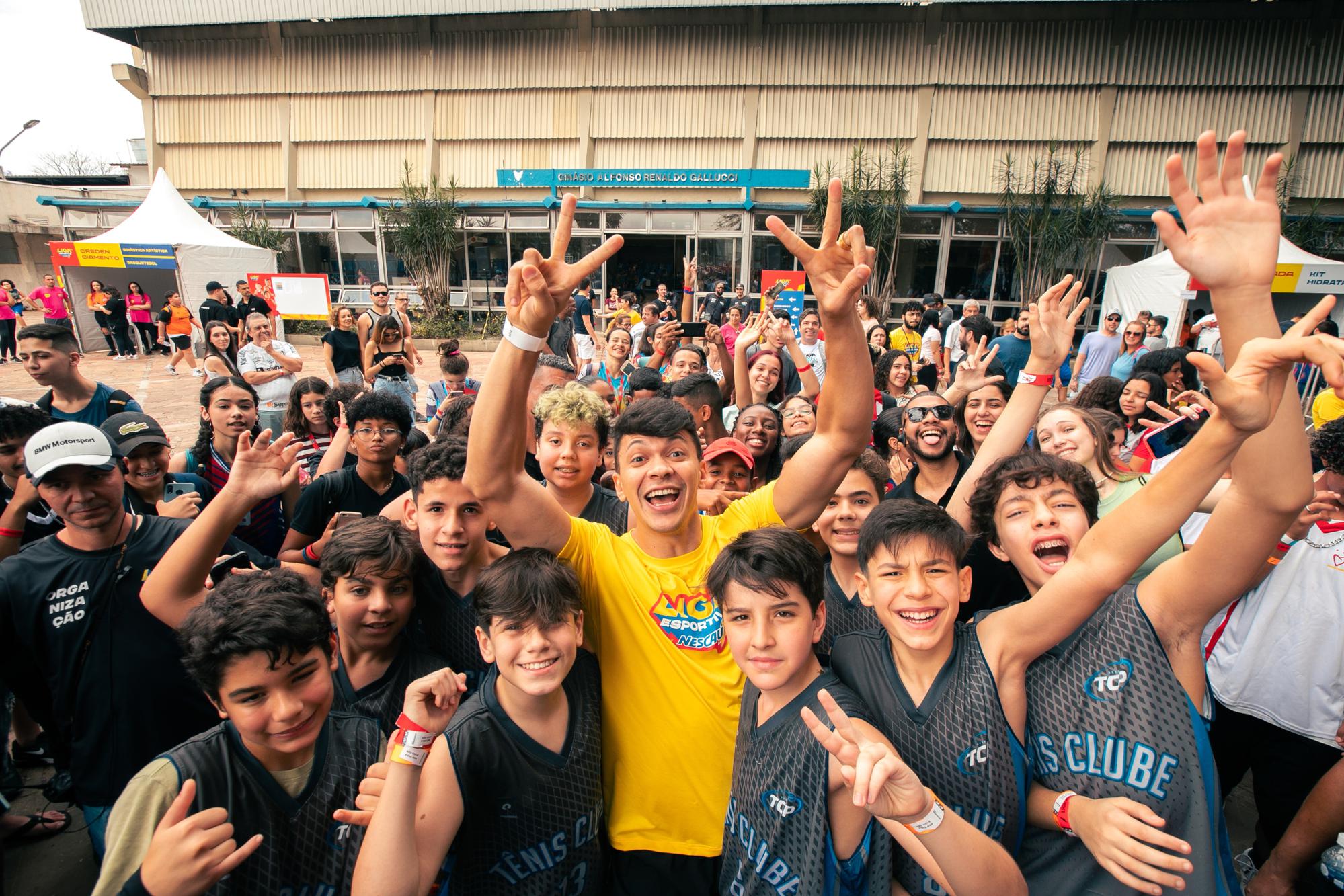 Habituado a impactar mais de 20 milhões de pessoas em redes sociais como o Youtube e o Instagram, Júlio Cocielo sentiu “na pele” o calor humano dos fãs neste domingo (9), em São Paulo. O produtor de conteúdo visitou a Liga Esportiva NESCAU, maior campeonato estudantil do Brasil, e fez a alegria da garotada, que o seguiu na caminhada pelo Clube Esperia com o celular na mão para uma foto com o ídolo.