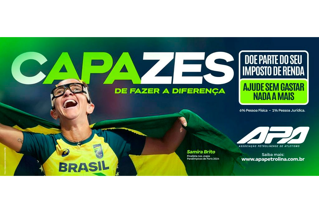 A Associação Petrolinense de Atletismo (APA) lançou, nesta semana, uma campanha de doações por meio da declaração do Imposto de Renda (IR). A iniciativa busca incentivar os contribuintes a destinarem parte do imposto devido para ajudar a entidade na manutenção de suas atividades, que beneficiam atletas, paratletas, crianças e adolescentes na região de Petrolina, no Sertão de Pernambuco.
